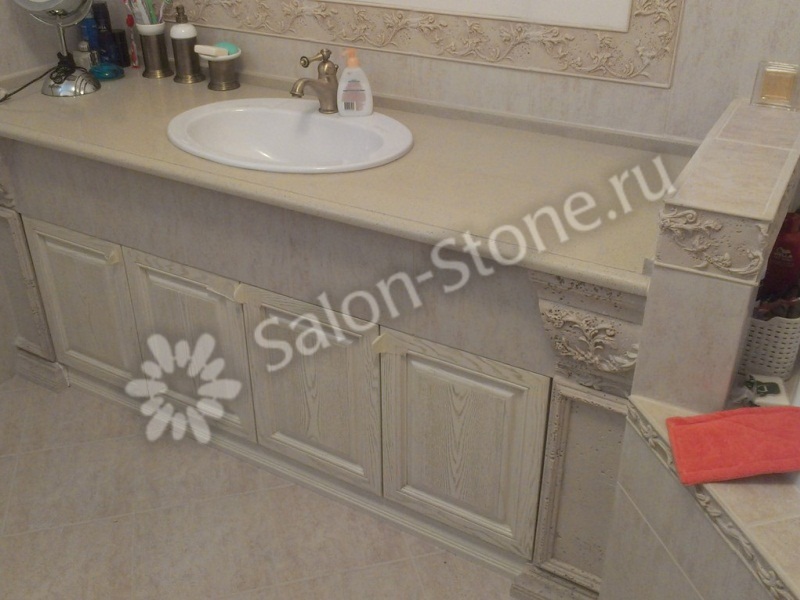 Небольшая столешница в ванную комнату из кварцевого агломерата